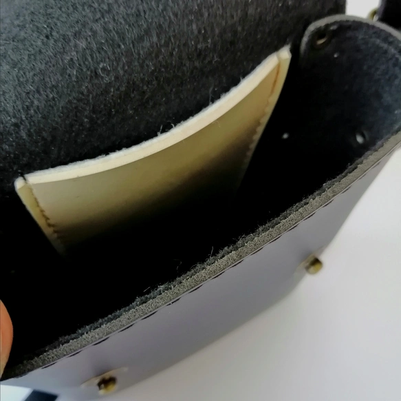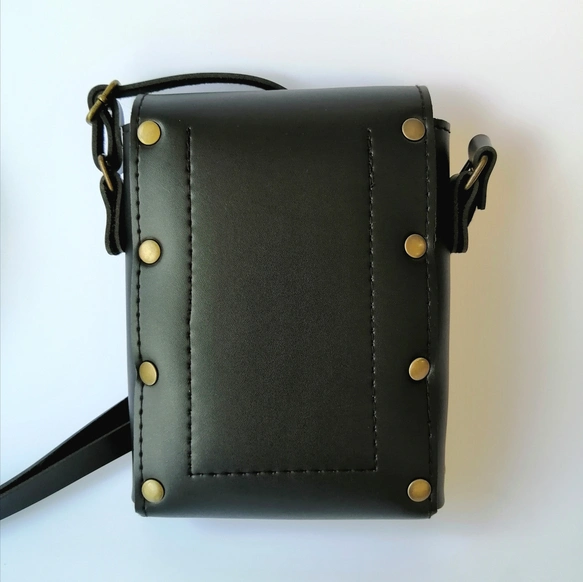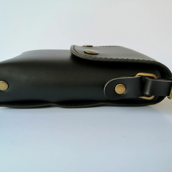 本革ポーチ◇ショルダーバッグ◇ハンドメイド◇本革レザー携帯や小物収納カバン◇ブラック◇