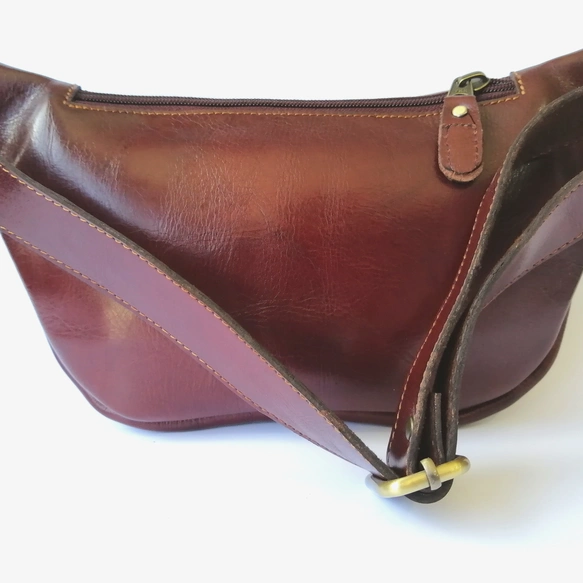 本革レザー◇Lサイズ◇男女兼用◇3ポケット◇レッドブラウン◇ショルダーバッグ◇