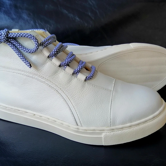 白の本革レザーを使いシンプルでスタイリッシュなデザインスニーカー『BAHAMA_R1』を製作致しました。!!